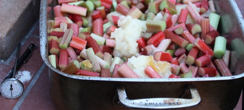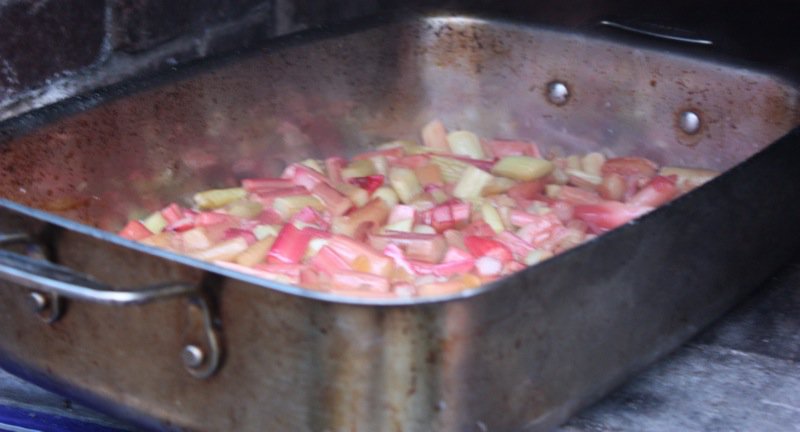 Sophia is still blazing as she is cooking the rhubarb for dessert.