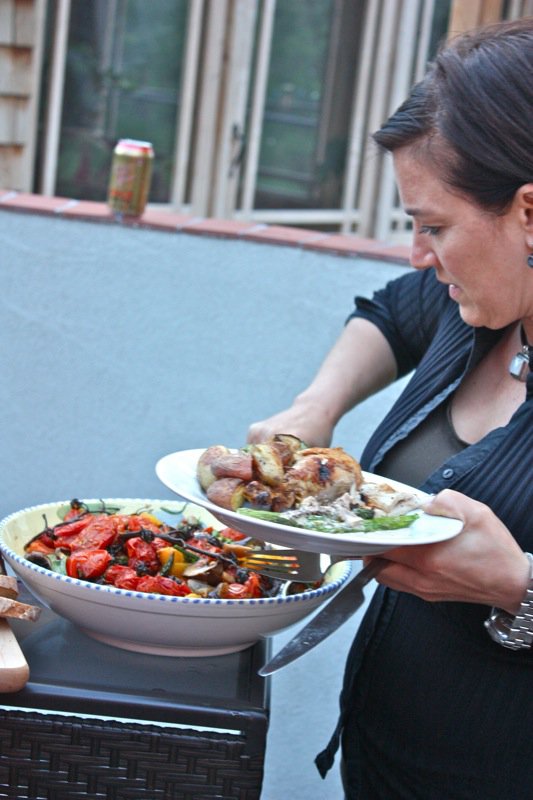 And the grilled vegetable salad was perched ready for take off. The extra roasted cocktail tomatoes were added to the already magnificent salad and I just had to stand near it for awhile. My, goodness. Where was my paintbrush?