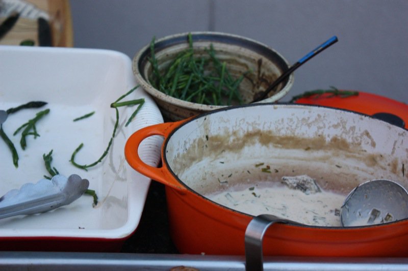 Calm Colleen (my new name for her) was setting up the table for the feast. She is taking some salt water asparagus out.