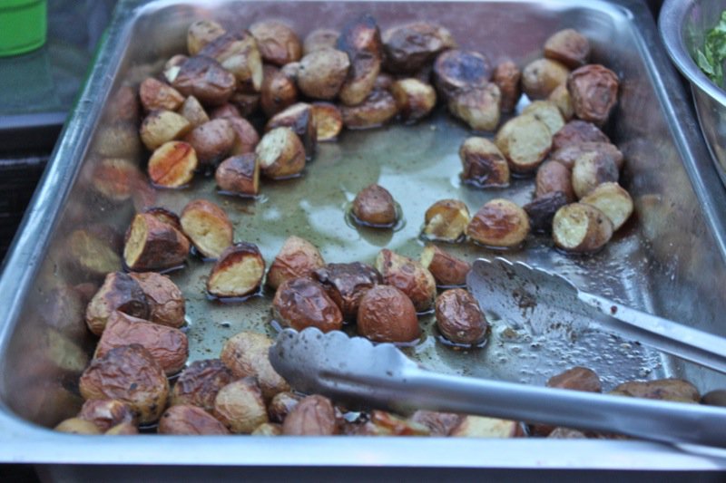 All line up for the food. At this point, everyone was hungry, but not for long!