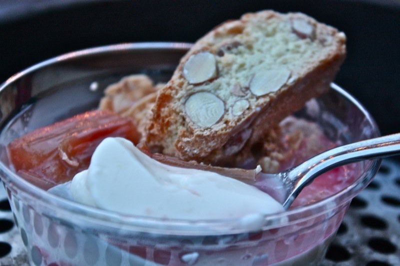 The rhubarb was roasted and sweetened with sugar and ginger to top the Bles-World yogurt panna cotta. This was outstanding and the perfect finish for such a rustic gala!