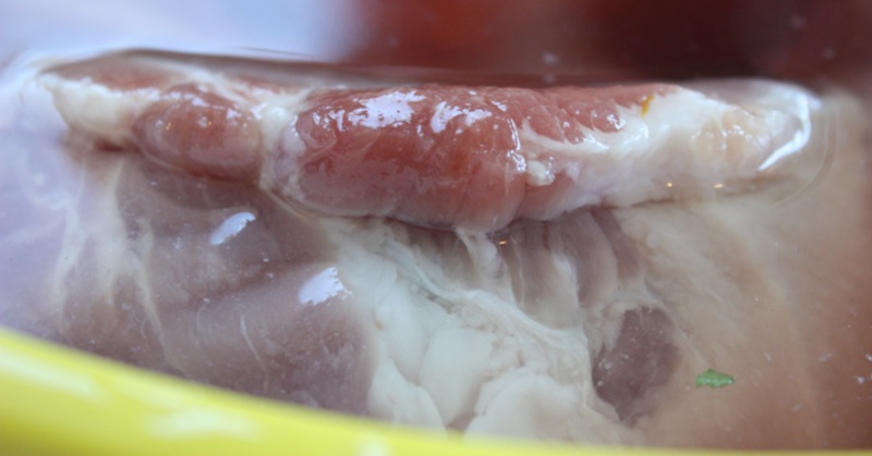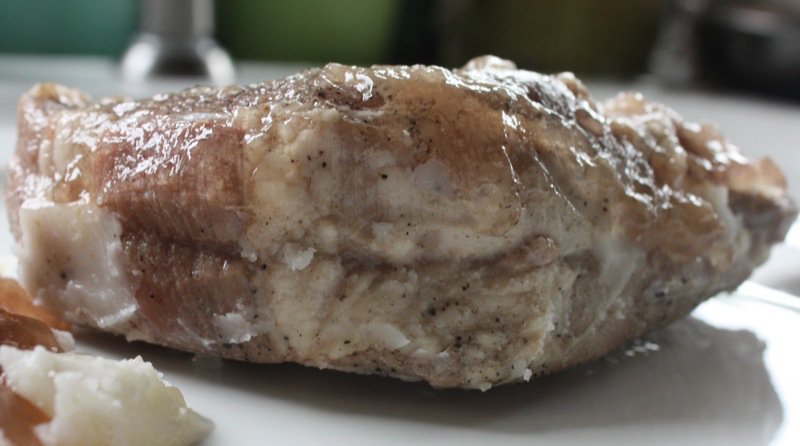 - Place each piece of pork in a vacuum bag with 1″“2 tablespoons of lard (preferably non-hydrogenated) and seal (I used duck fat)