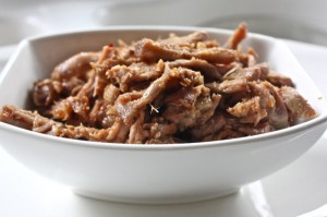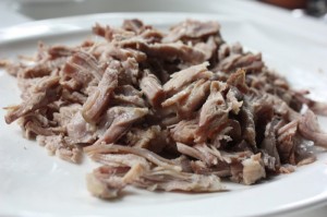 and, as I have never done the pulled pork – and am also new to sous vide, just followed the recipe, sans bone. Yes, next time, bone in! I was careful with the sauce. Good thing, too, according to Vanja’s comment. The meat was really moist, but yes, the photo looks really needy, sauce-wise, no doubt. Did you see Take it and Like it’s pulled pork post? It was just out last week – and looks fab. I definitely needed to cut my portions in another direction to have longer shreds. What sauce do you use?