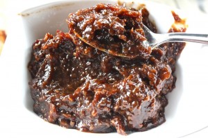 I mixed some of the sauce in the pulled pork with the jelly. I thought it was deadly delicious. Vanja thought it was: “Good.”