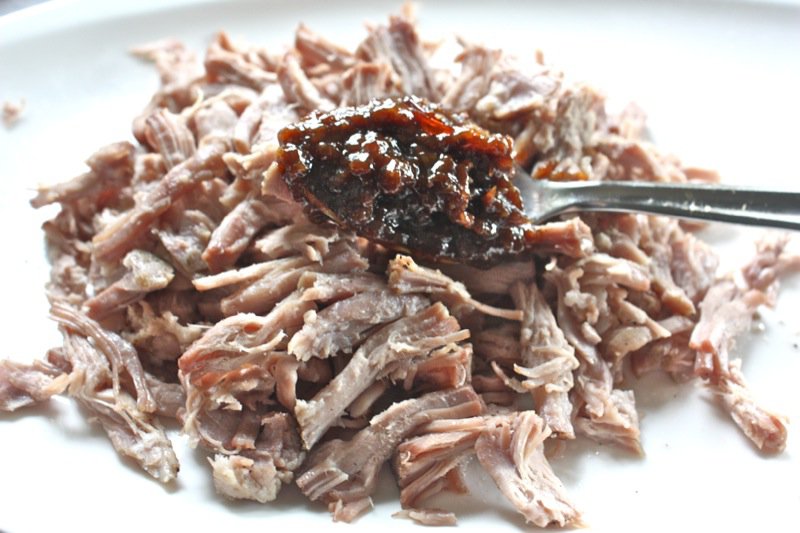 - Dry the surface of the meat with a paper towel; for American style pulled pork, shred and serve with your favorite barbecue sauce, and for Mexican style pulled pork, sear the surface with a blowtorch (or in a pan with just smoking vegetable or nut oil) before shredding