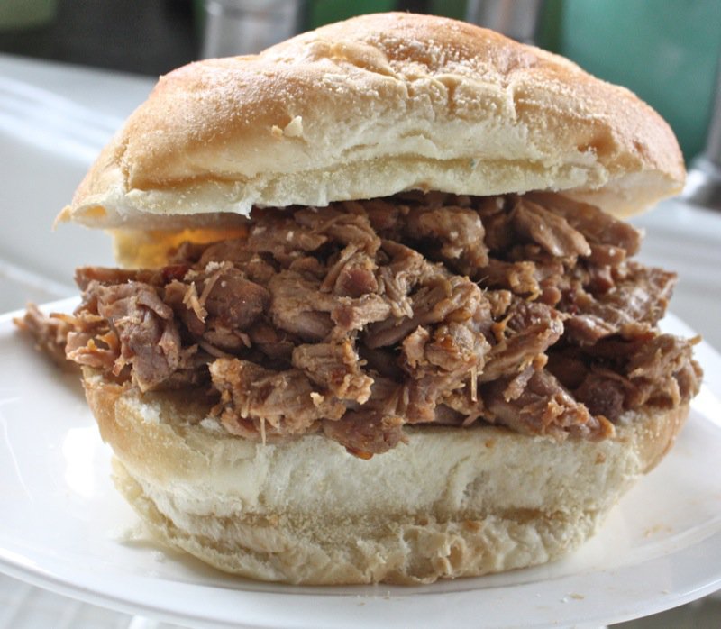 It looks surprisingly dry in the sandwich Valerie as I’m used to more of the dirty southern recipes which seem to add a copious amount of sauce. You know the whole, ‘dripping now the arm syndrome’. I slow cook pork shoulder on a regular basis, and I’ve never tried breaking it down into smaller pieces..