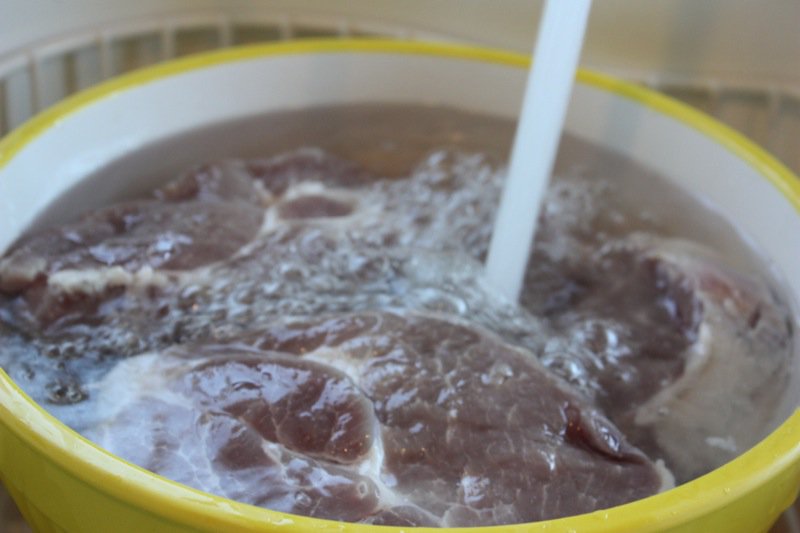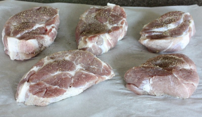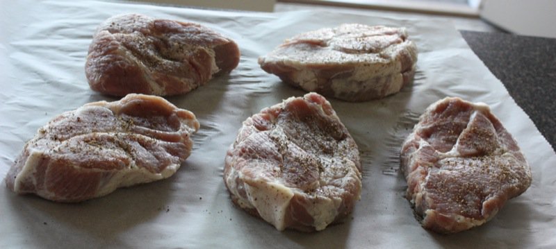 - Drain, rinse and pat dry with paper towels; season the pork with Kosher salt and coarse ground pepper