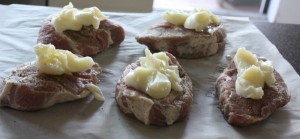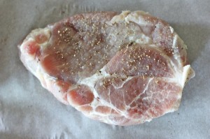 - If bone-in, remove the bone from the pork roast with a boning knife; either cut roast into steaks which are roughly 7 ounces each, or cut the roast so that it is no more than 70 mm (2.75 in) thick (I used the thickenss as a guide)