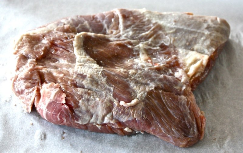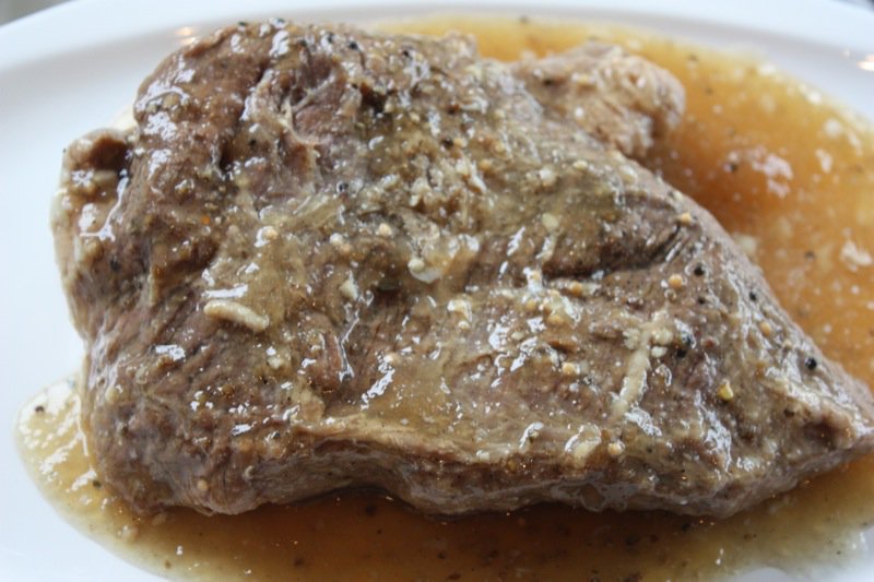 After the Duck Confit, brisket was my second venture into sous vide cooking. I had two briskets in the freezer; both very recently purchased as I was wanting to learn to cook them from “Daddy Drew“. Believe it, I have never cooked a brisket, and it was on the top of my list. Then the Sous Vide Supreme came for a visit to my house. What a perfect opportunity. And, Douglas Baldwin had a recipe for one, too! Interestingly enough, he did include a little controversy within his recipe. I chose to do this brisket his preferred way. But, this was just a portion of a brisket, and though I wanted it rare to medium, you will see that it is definitely medium to well done. With that noted, it remained extremely moist, tender and full of flavour!