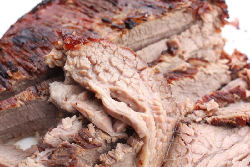 - Remove the brisket from the vacuum sealed pouch and use the liquid from the bag to create a quick sauce by reducing in a pan over medium-high heat and adding a corn starch slurry to thicken (I did not do this); slice the meat across grain into long, thin slices and serve with beef glace