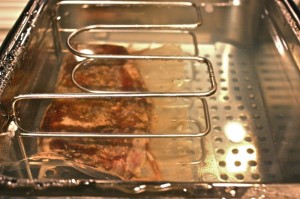 After Duck Confit, and Brisket, I had to try steak and pork chops in the Sous Vide Supreme! A beautiful strip loin and a lovely ribeye with two wonderful chops all from Ben’s Meats.
