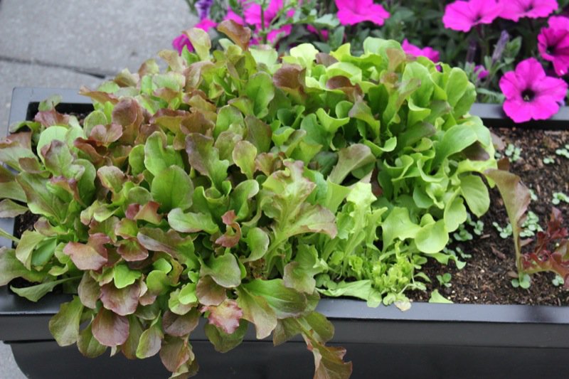 This year I planted my lettuces in tubs a week or a few apart from each other so I would always have fresh greens. Look at this beautiful variety. Lush!