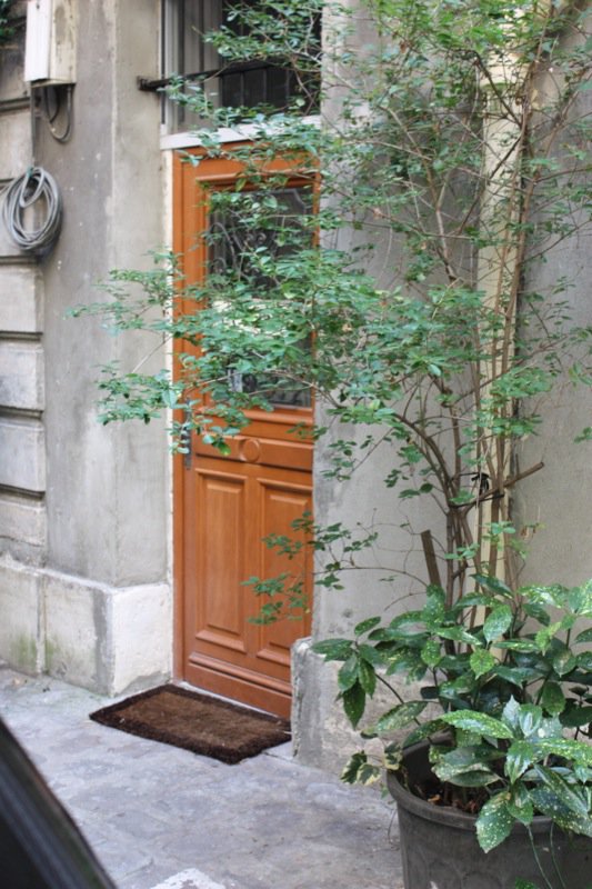 We were on this very busy street directly across from the Jardin Luxembourg and #89 was atop the massive red door you can see with the arch above it, below. But it was a heavy door and there was no sign?