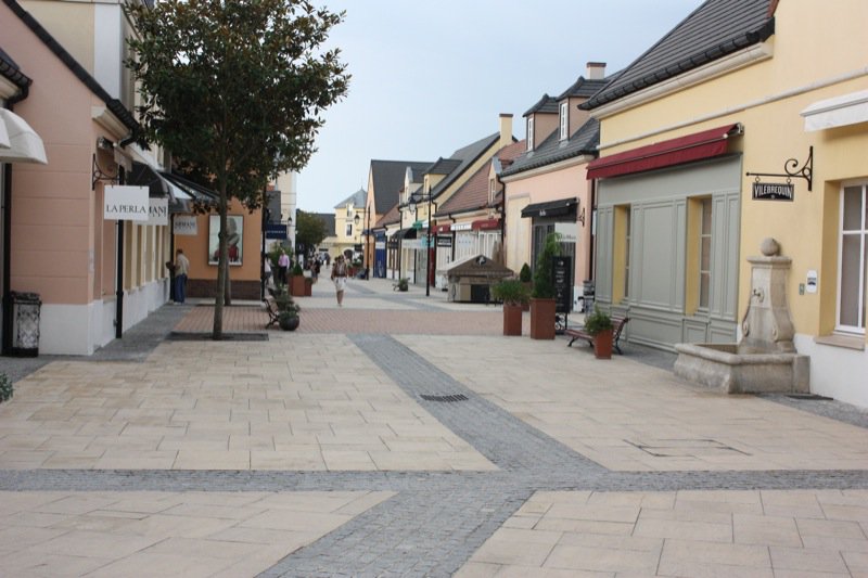 It was exactly “to the end, outside, and to the right”. By now, I was not expecting a quaint French village, but I certainly wasn’t expecting a highly guarded and exquisitely manicured man-made shopping village like this!