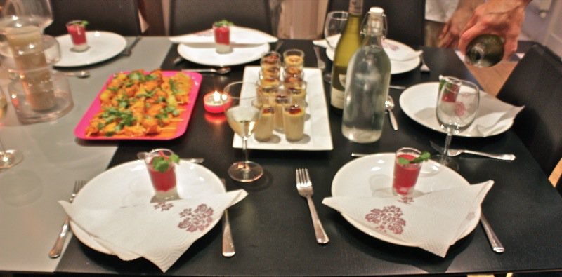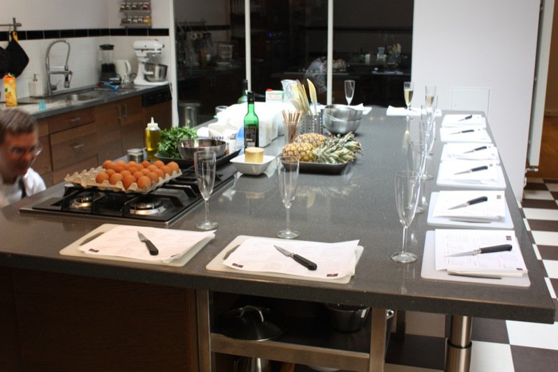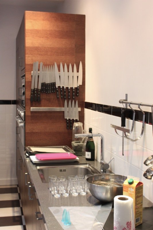 The shrimp did look devine! (I took a look around while people where arriving.) The space was very well equipped. Vanja had already donned his cooking attire (a plastic apron), so I did as well!