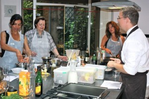 At this point, I will say that almost everyone had difficulty with their recipes. They were incomplete, confusing, and very poorly written. This is the first time I have ever been to a cooking class where the Chef was hired by the owners to teach a class he didn’t prepare the recipes for. Chef Justin was very skilled, warm and a great teacher, but he had not read over the recipes and did not prepare that part of the class properly. As a result, there were little errors happening all over the kitchen.