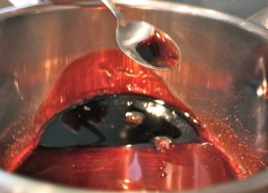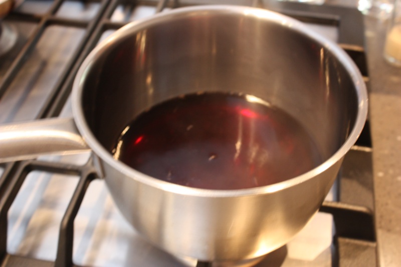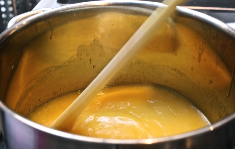 Meanwhile, I am heating the lemon and orange juices and the sugar.