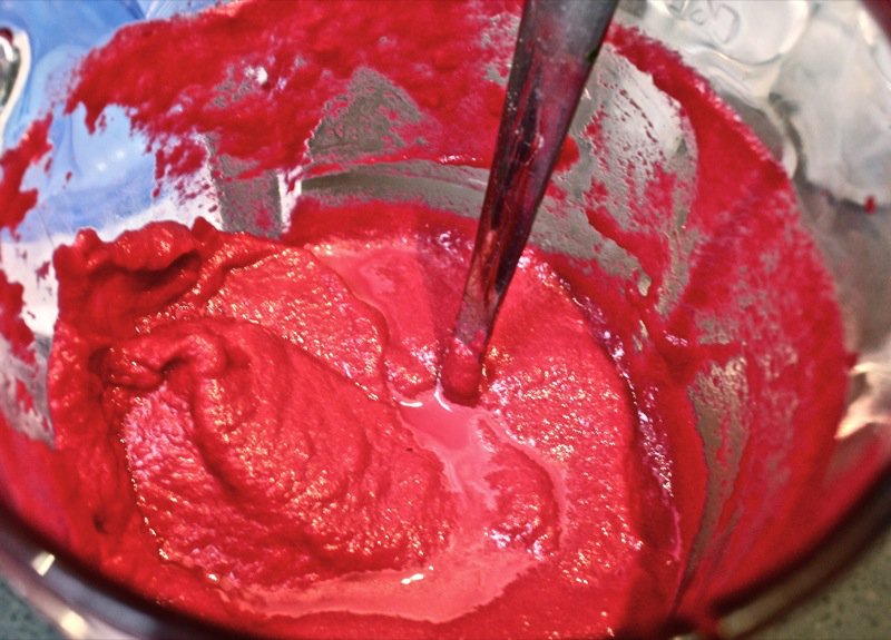- Place a few cubes of beets in food processor at a time to create a liquid to enable the others to blend; add the olive oil and a little water, as necessary, to blend to a very thick soup consistency