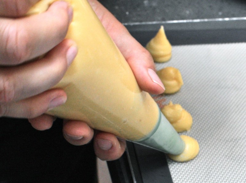 - Fill a pastry bag with the mixture; pipe the choux, brush with some beaten egg and flatten with a fork (this is the traditional choux shape)