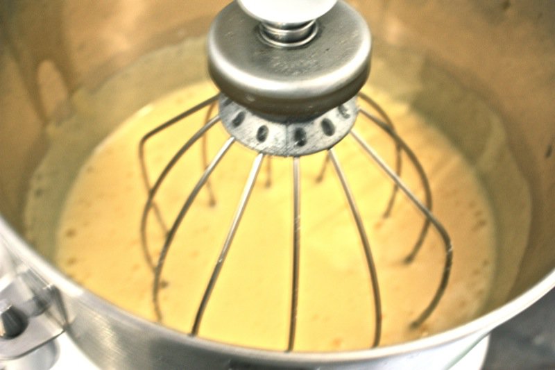 - Whisk eggs, egg yolks, and sugar in the large bowl of an electric mixer (Kitchen Aid) until the mixture is thick and pale