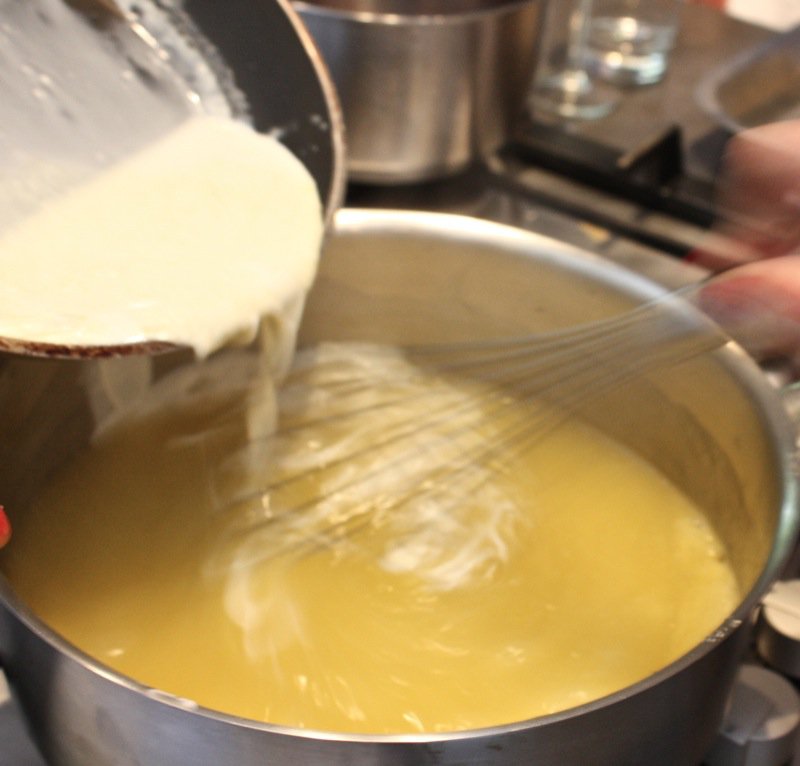 - Cook, stirring constantly, on medium heat and when it comes to a boil, cook for one more minute, whisking constantly (pastry cream technique)