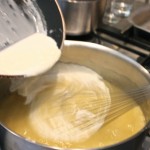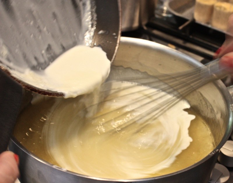 - Using a whisk, carefully and slowly add the remainder of the cream to ensure there are no lumps