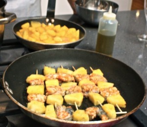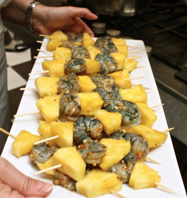 - Brochette gambas-ananas (King prawn and pineapple skewers)