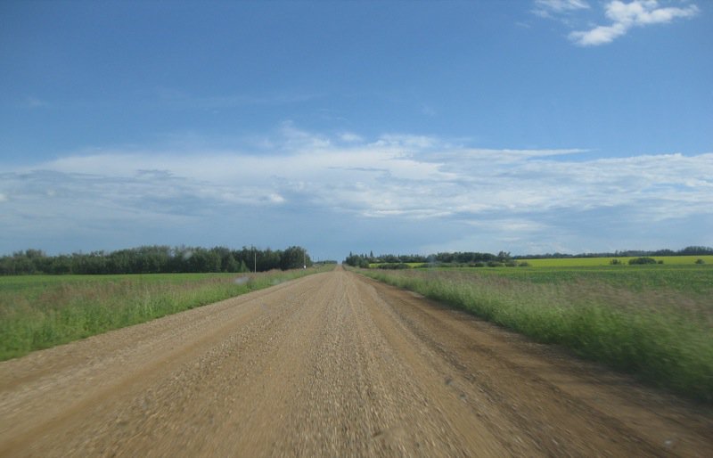 The drive was as it should be. Perfect. The gravel road had me excited. The expansive blue sky embracing the thriving crops as the sun radiated summer heat through my open sun roof almost had me press the eject button so I could run through the fields beside my own car. Alas, I am not fit enough, anymore! This is my Alberta. Just look at it!