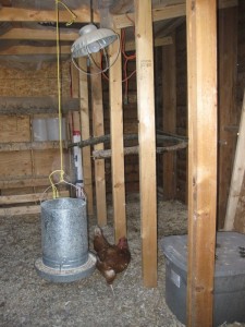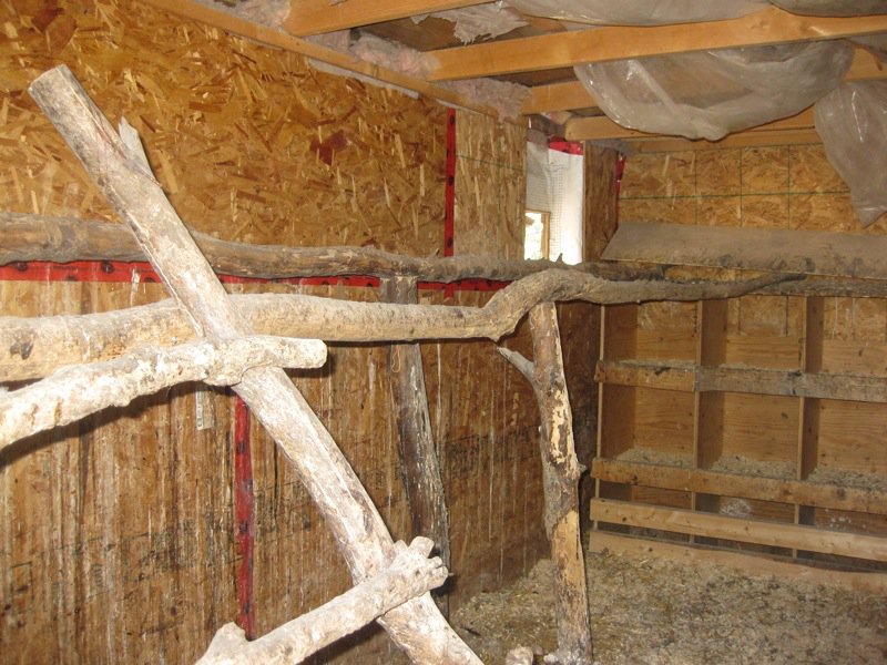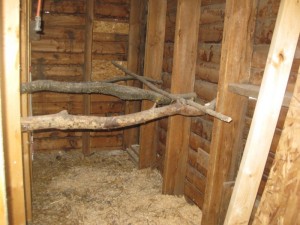 Owen has the perches all through the coop. To the right, you can see the smaller perches for the younger chickens. He has power and light and some heat in the coop. Adam and his sister gather the eggs daily and sometimes find them in the most unlikely places!