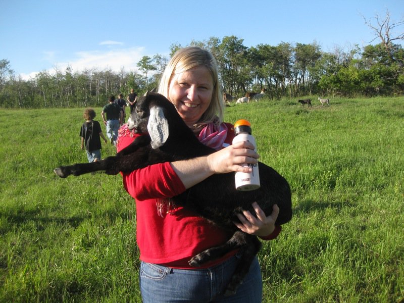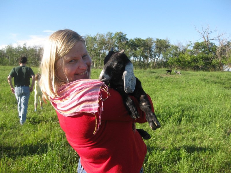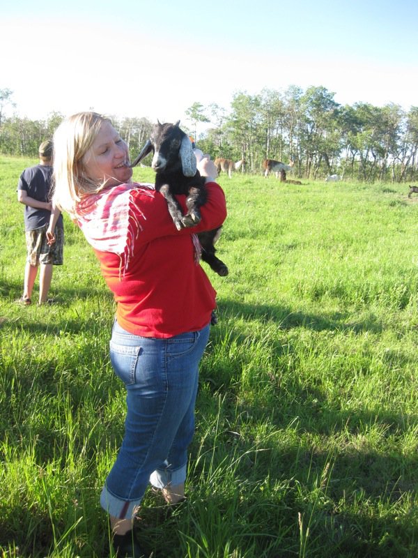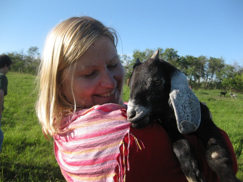 Anita snagged a baby goat who immediately thought she was mommy and began suckling her scarf!