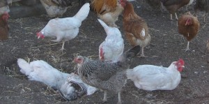 There were several kinds of Laying hens in the coop. I later sent an e-mail to Adam to remind me what they all were. He was the one with all of the information that day: The Brown Leghorns lay brown eggs; the White Leghorns lay white eggs; the Buff Orpingtons lay light brown eggs; the Buff Brahmas lay pinky coloured eggs and have hairy (well… feathery… feet!), the Americanas lay blue eggs. Those are the Martha Stewart eggs, and of course, my favourite! Although, Chrystal made it very clear that there is no difference whatsoever on the inside of the egg. “The colour of the shell determines the breed of the chicken; there is no flavour or nutritional difference between them!” You can generally tell what colour of egg the hen will lay by looking at the colour of their ear lobe. If it is brown, they will lay brown eggs, and so on. She sells her eggs and delivers once or twice a week into the city (but is currently not able to take on any new customers). Every dozen gets one blue egg. You can see the exact assortment in a photograph at the end of this post.