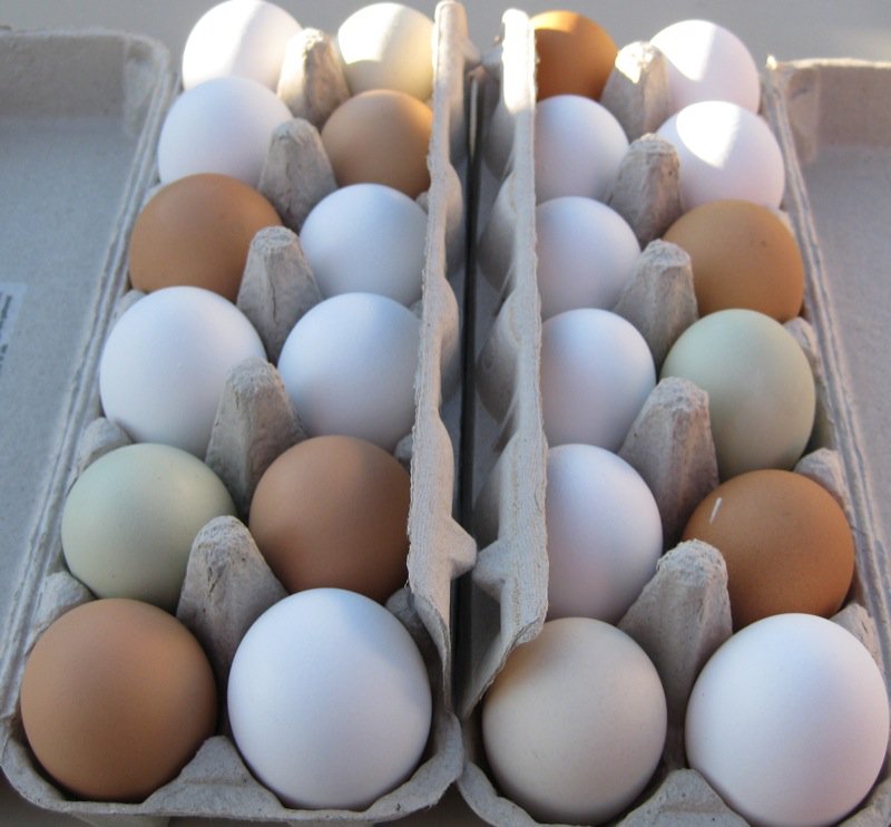 You can see they have a lot of room inside of the coop area, and outside of it, too. Below are the assortment of shell colours you should expect when getting eggs from Chrystal. Aren’t they gorgeous?