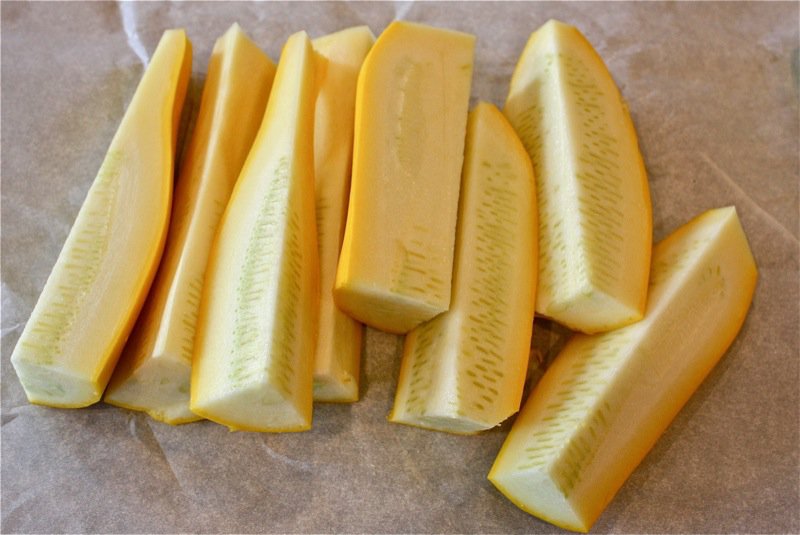 They are not very flavourful. Their texture is not very pleasing (at least, to me) but, aren’t they gorgeous? And they are very nutritious. Archaeologists have traced their origins to Mexico, dating back from 7,000 to 5,500 BCE, when they were an integral part of the ancient diet of maize, beans, and squashes. That pre-Columbian food trio is still the mainstay of the Mexican cuisine and is known today as the “three sisters.” Believe it or not, that is fairly recent information for me. The zucchini found its way to Europe where it is called zucchino in Italy and courgette in France and the England. (The English also refer to a variety that is slightly larger and plumper as marrow.) We just call it zucchini in Canada: green zucchini, yellow zucchini…