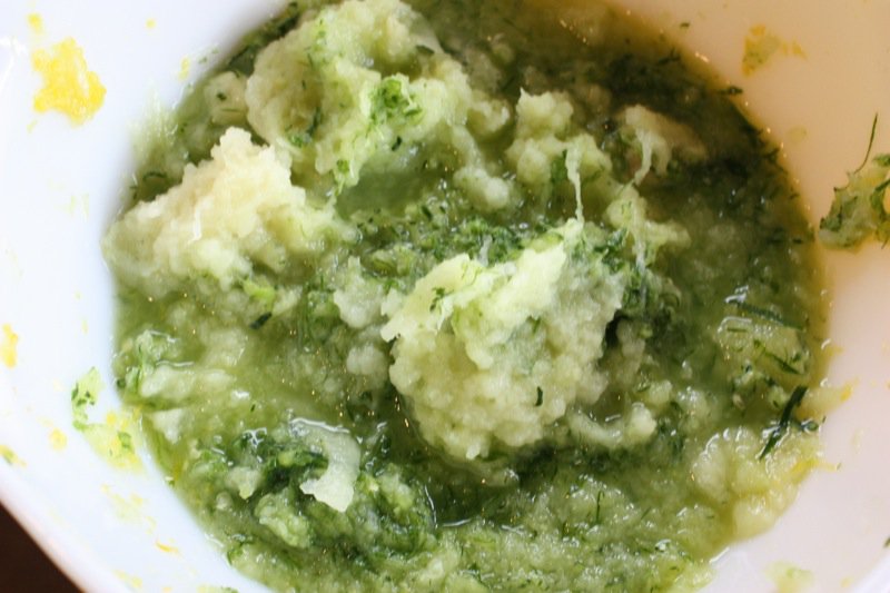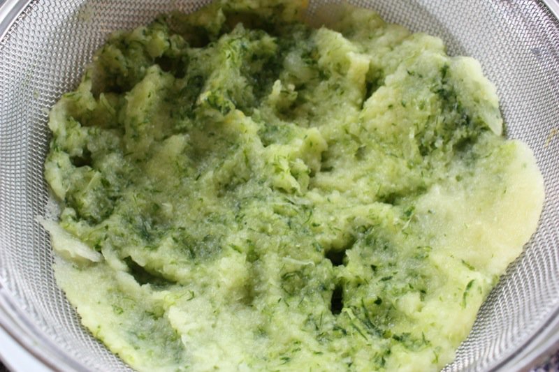 I then laid a teatowel across the finely shredded zucchini and flipped it over twice to absorb any wet juices. I didn’t squeeze at all.