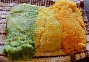 The green zucchini actually had so much moisture in it that I sat the grated bits in a sieve to strain it for a bit. The other two were not at all wet in comparison. I had them on parchment paper and each pile only wept a little.