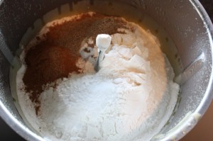 - Scale in flour, baking powder, baking soda, salt, and spices into TM bowl; combine at speed 2 for 10 seconds
