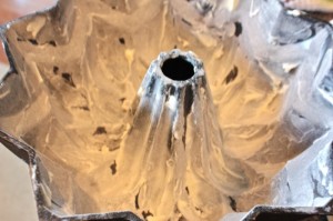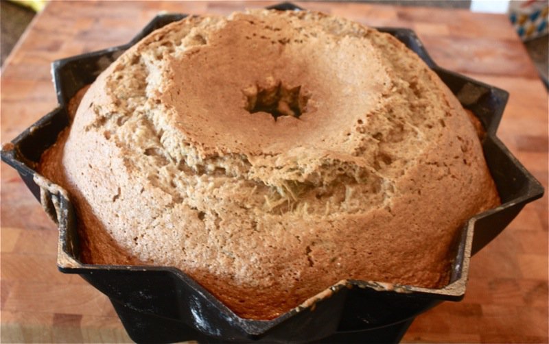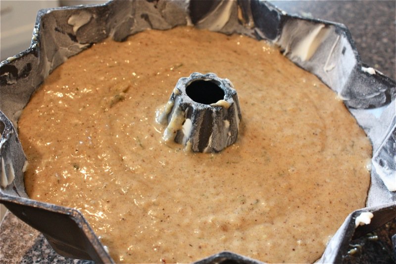 The nuts and vegetable were folded into the batter and the batter poured into a buttered and floured Bundt pan.