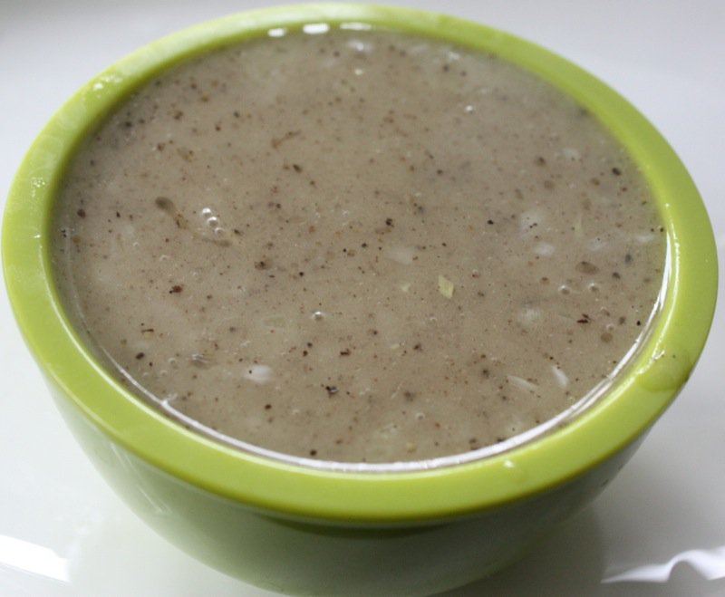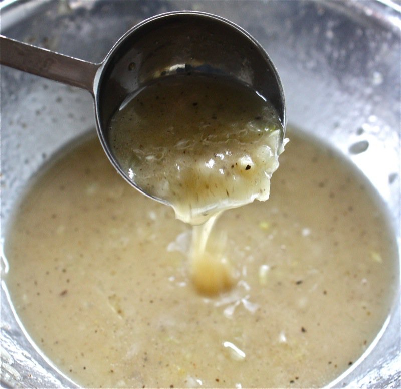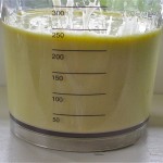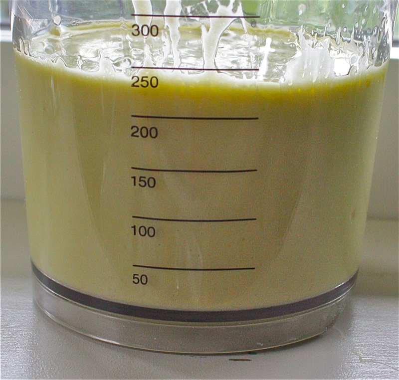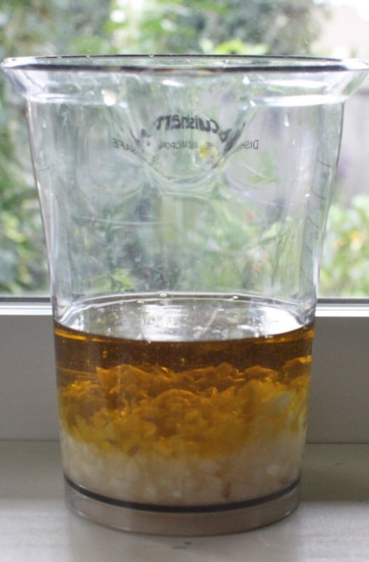 Above, the dressing is whipped by hand; below I used my immersion blender.