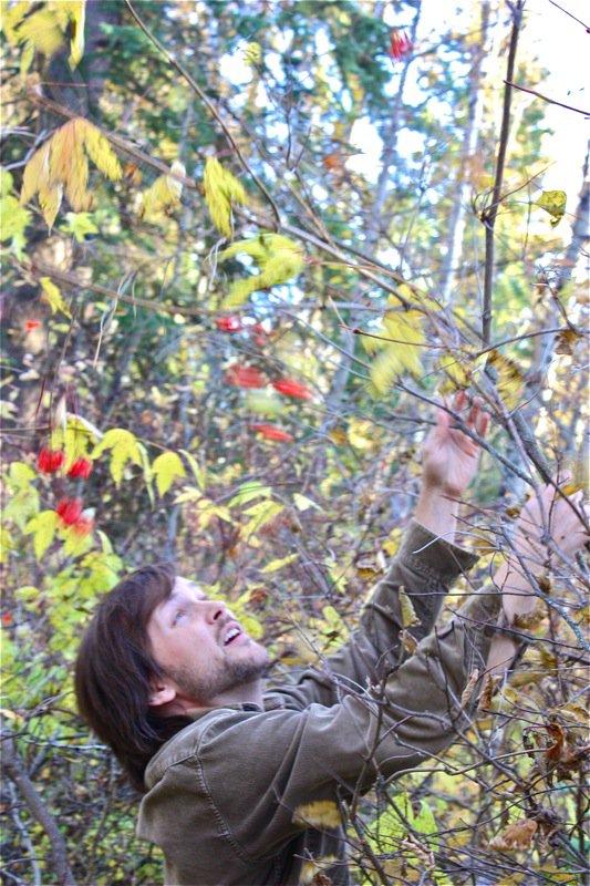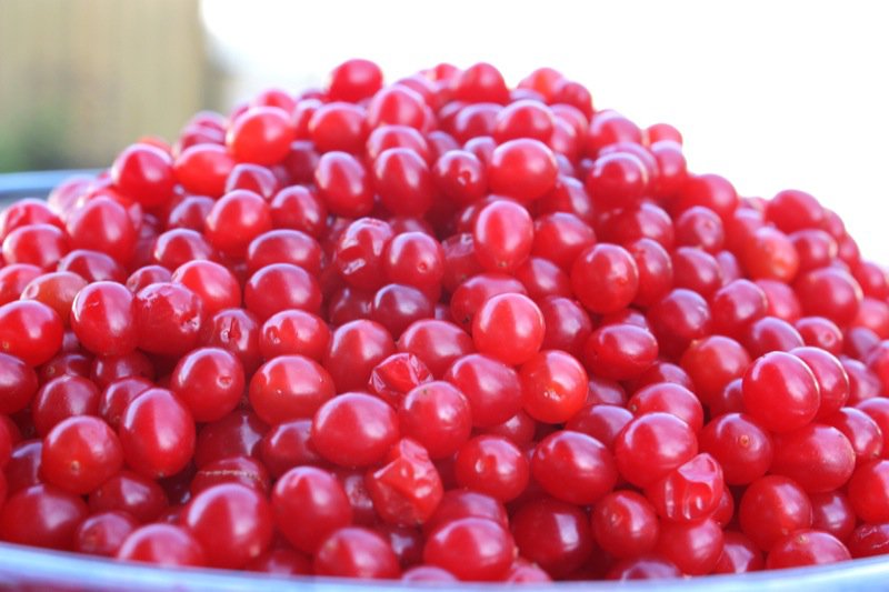 They are tall, but the branches are easy to manoeuvre which made picking them incredibly rewarding and a heck of a lot of fun. Kevin pulled this tree over and we picked and plucked about a half bucket full each on the alone! See how plentiful the clusters are! But they are definitely not tasty as a fresh fruit. Tart would be an understatement. Yet, they are nothing like a chokecherry in dryness. There is a stinkiness to them that is sour and sweet and musty and musky. It is really very appealing in a completely unexpected, unusual, and unexplainable way!