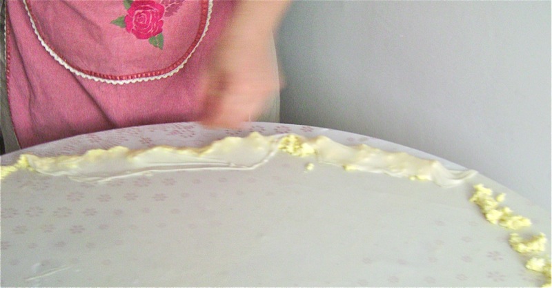 - Then, lift the cloth gently to force the dough to gently roll toward the centre of the table; stop it when you can easily roll the rest by hand