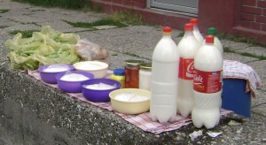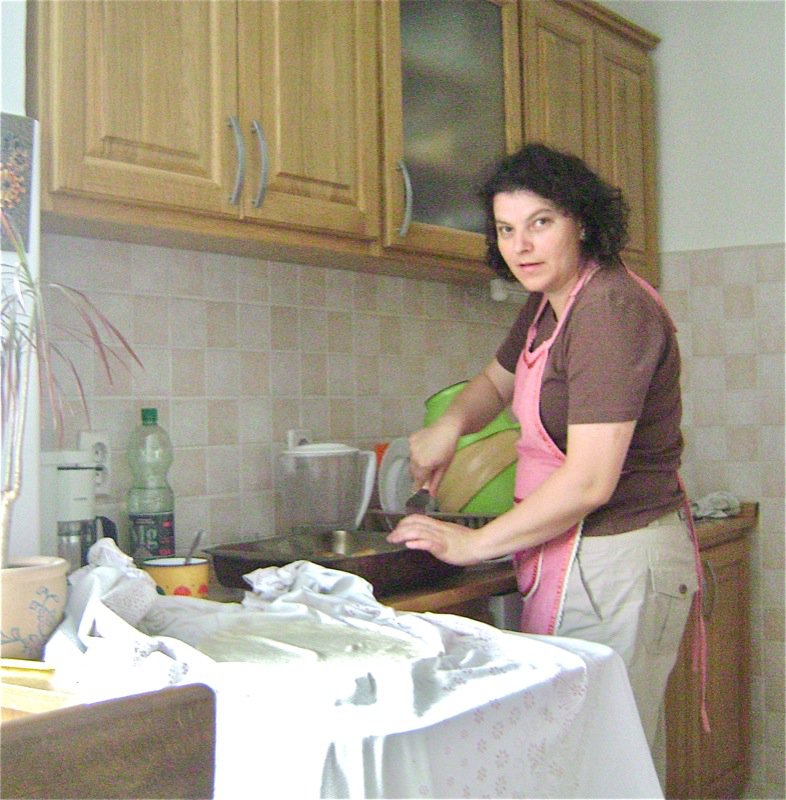 But, Elsada suggested that we also make Sir Pita (Cheese Pie) and I love that, too. It is made with Mladi Sir, a very young cheese (using unpasturised milk) and we are in luck. Every Saturday morning, farmers, or villagers from nearby, pull into a side street near the multitude of high rises in this densely populated area to sell their fresh local wares to the senior tenants who crave their fresh farm food. I don’t know if this is legal. It must be. One finds people almost everywhere in high rise areas throughout the Eastern block, on the streets, selling wares. Ako said that these people come very early and are usually gone and sold out by 9 am. We ran over as we wanted a selection to choose from!