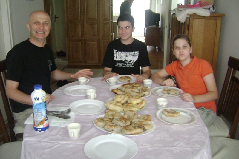 Where is Vanja? He was out visiting a friend, and we are all waiting. The meal is getting cold and the aroma is intoxicating. We must eat. Look at Mirza giving his dad (Ako) “the eye” for being so silly. Is this role reversal, Ako?