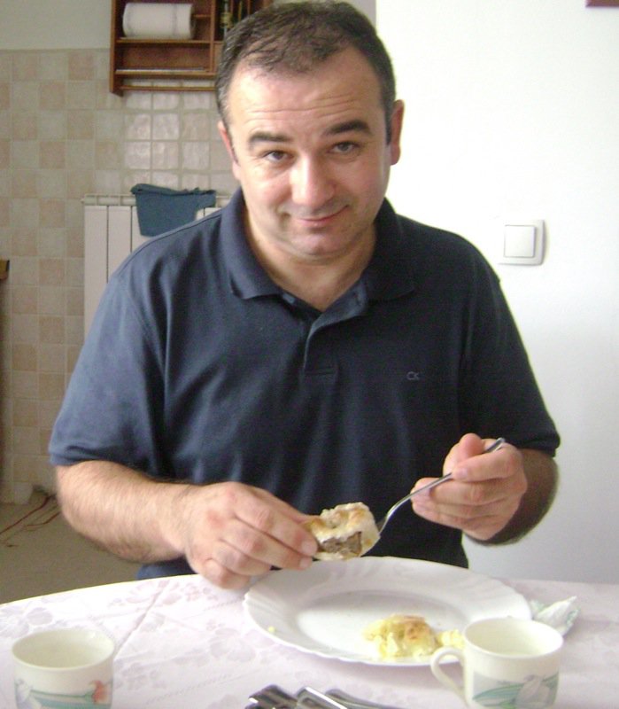 Oh, here is the tardy guest! He said he could smell it from the parking lot. He was lucky he arrived in the nick of time! Burek is his favourite.
