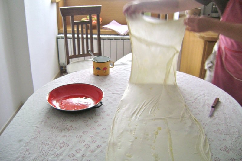 Thanks to this blog I finally managed to get the burek dough right. Its thinner than pages in a bible. It behaves just as on the pics. This is sofar the best recipe I have found in spite of the abovementioned faults.