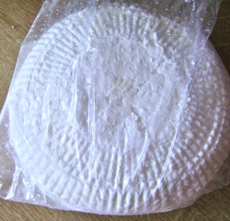 Elsada’s mother makes mladi sir all the time on the farm and she told me how to make it. I cannot wait until I get my hands on some unpasteurized milk. There is nothing in this cheese, but the milk: time and temperature make it as delicious as it is. The cheese is traditionally placed in a colander and you can still see the markings of it on the mladi sir (young cheese) below.