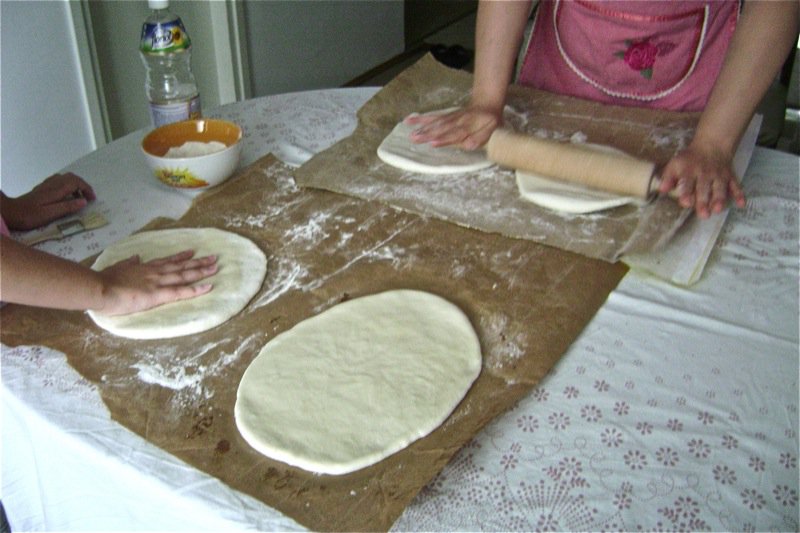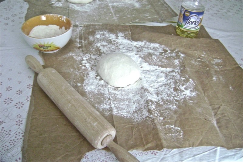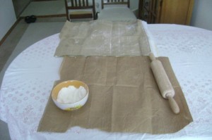 Elsada saves the bags her flour comes in to roll the dough out on. It is a great consistency for this purpose.