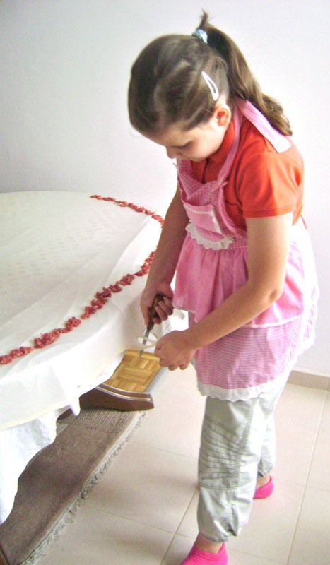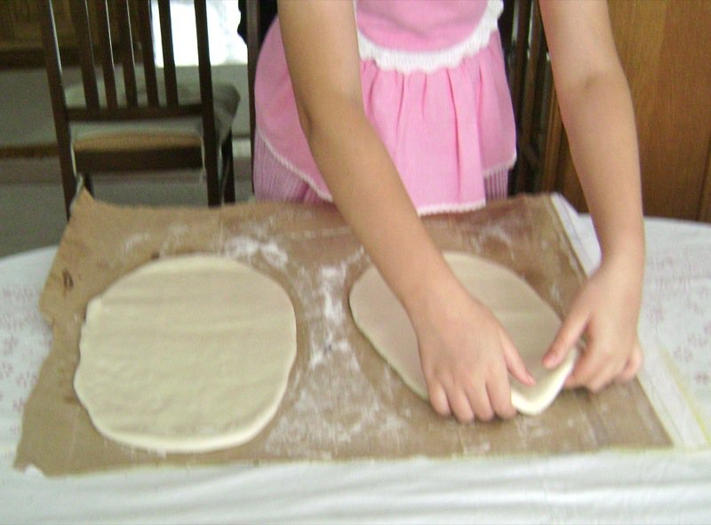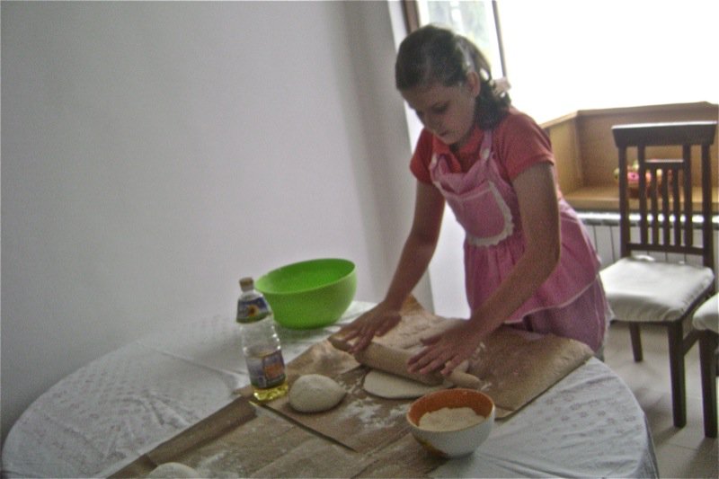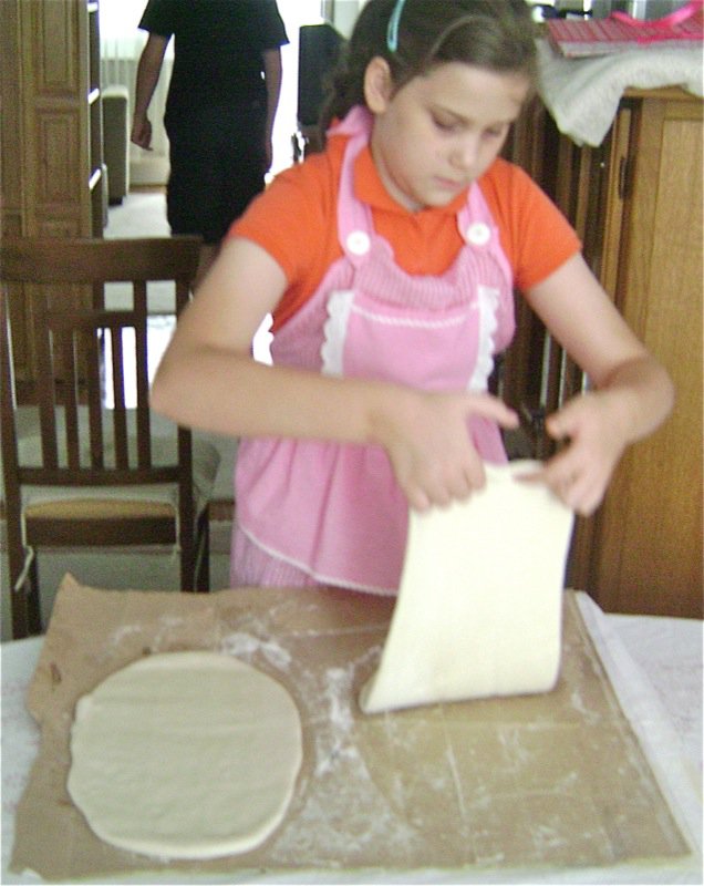 No. It is good. Emina is already using the knife exactly like her mother does to trim the extra length off of the sides of the dough.