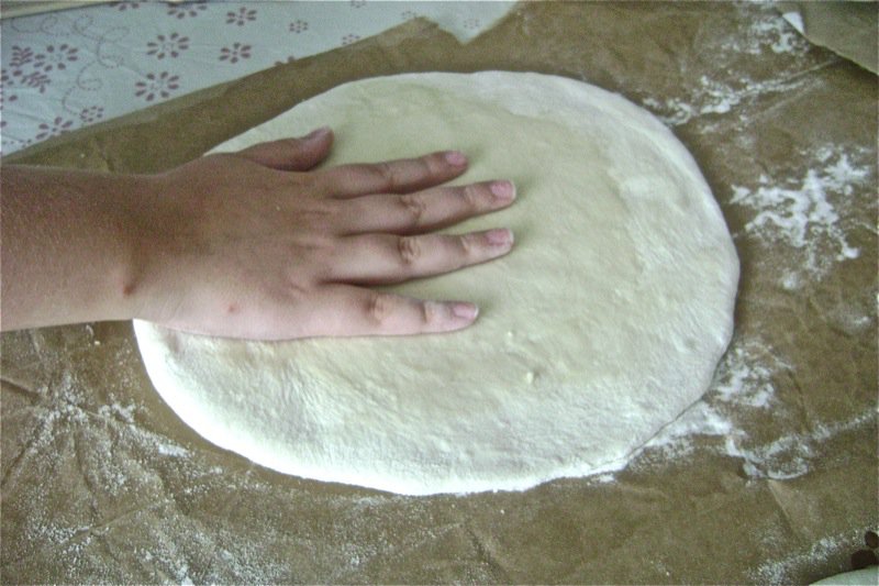 Below, I am ogling the lovely flat well oiled dough.