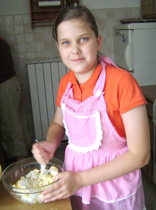 Emina loves to cook! She mixed up the cheese filling in no time!