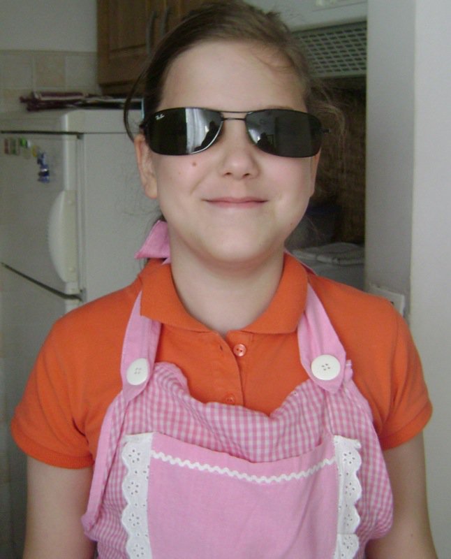 These are Emina’s cool shades to protect her eyes from crying when we cut the onion.